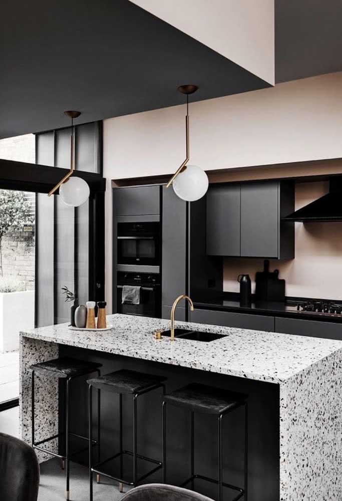 Imagem 35 – Já pensou em usar granilite na decoração da cozinha conceito aberto com ilha?