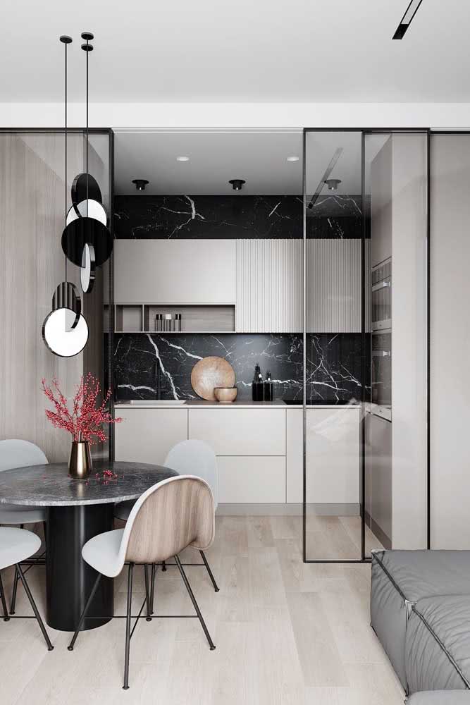 Imagem 29 – A clássica cozinha preta e branca na versão U.