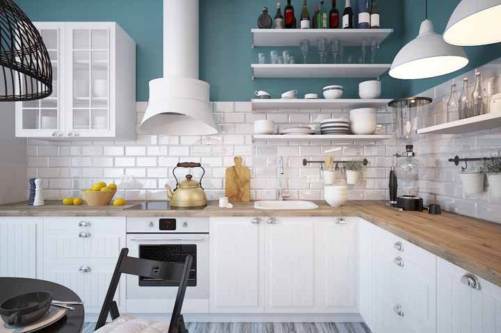 Imagem 10 – Se não quiser usar prateleiras, considere armários com portas de vidro; elas expõe e organizam os utensílios da cozinha
