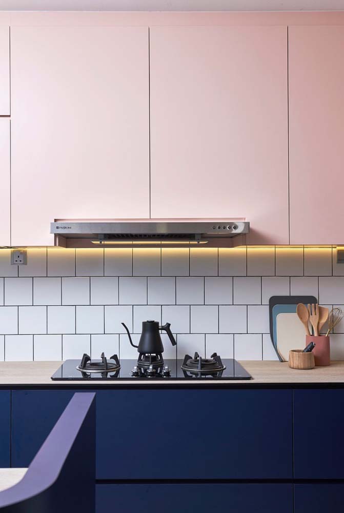 Imagem 5 – A tonalidade do rosa claro deixou a cozinha moderna