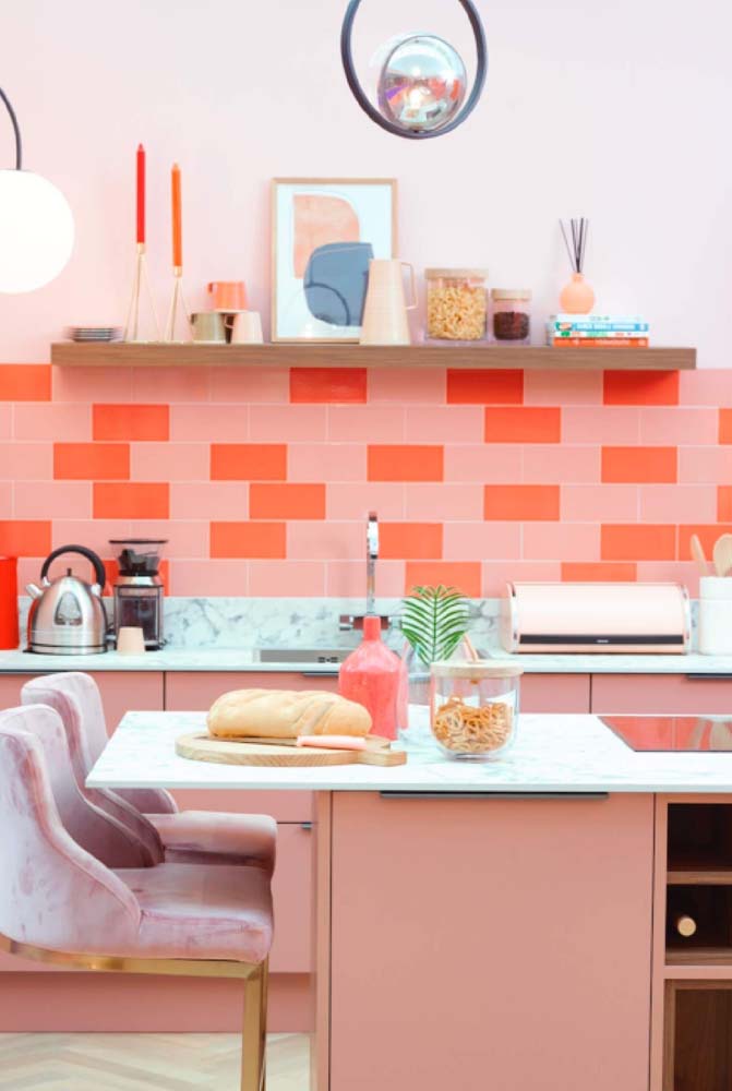 Para ter uma cozinha mais descontraída e alegre: Use tons de rosa mais vibrantes, lembrando sempre de não exagerar nas cores para não deixar o visual cansativo.