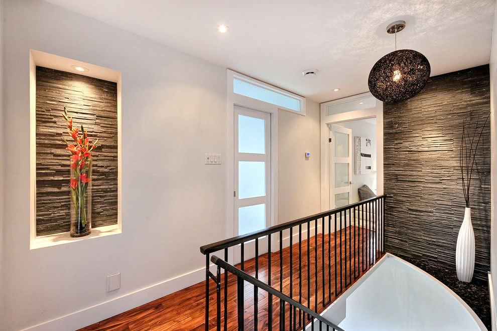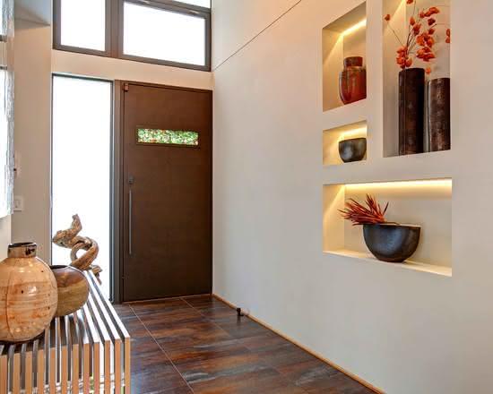 Os nichos no corredor podem ser usados para abrigar vasos, objetos decorativos e obras de arte. O espaço embutido é mais adequado para não ser tão invasivo.