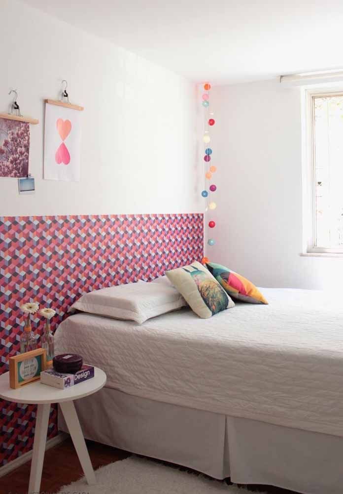 Imagem 34 – Decoração com papel contact: quer uma sugestão de cabeceira de cama bonita, barata e simples de fazer? Olha essa da imagem, toda feita com papel contact.