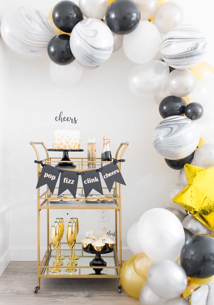 Os balões são sempre bem vindos em qualquer festa, inclusive a de Ano Novo. Eles são ótimos quando a intenção é economizar, já que são bem baratinhos ou, ainda, quando você não tem muito tempo sobrando para fazer algo mais elaborado.