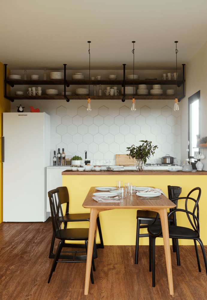 Se você é adepta de ambientes alegres e gosta de cozinhar, aposte em tons de amarelo. Esta cor remete à criatividade e inteligência e é perfeita para estimular as tarefas da cozinha.