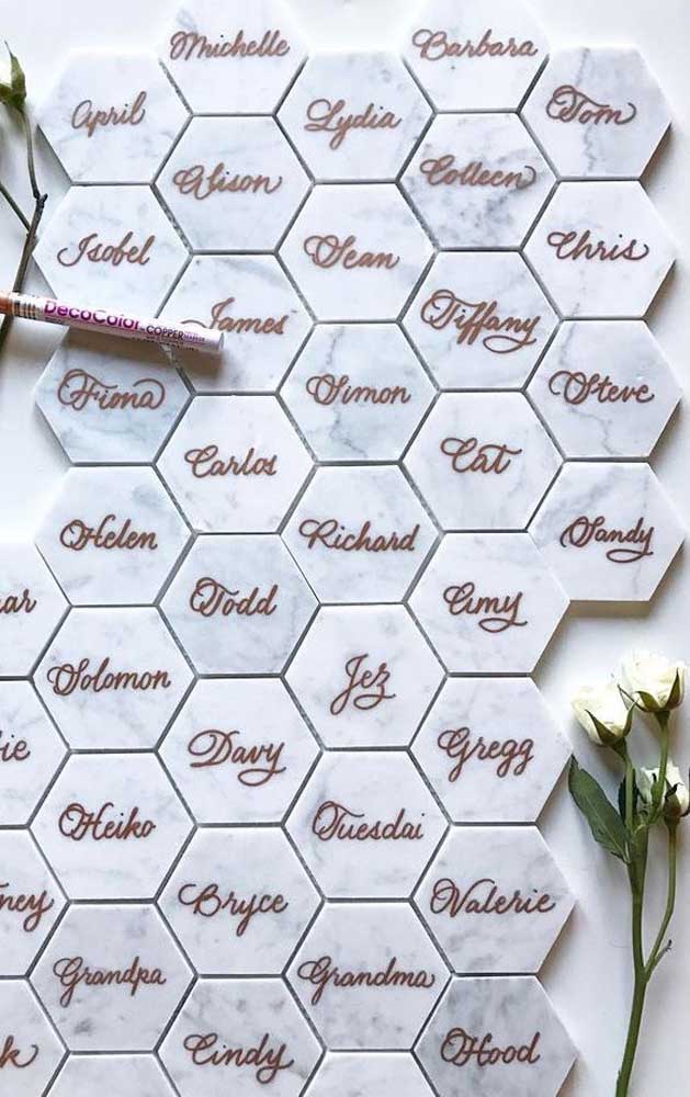 Imagem 26 – Que linda sugestão de mesa posta com os lugares demarcados de forma personalizada.