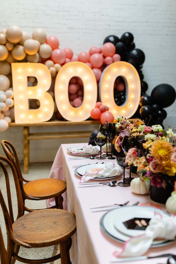 Imagem 12 – Já pensou em uma decoração de Halloween em tons de rosa? Olha só que graça.