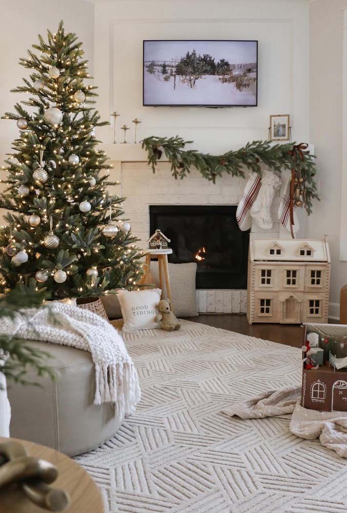 Imagem 5 – Já nessa sala moderna, a decoração natalina aparece em tons claros e neutros.