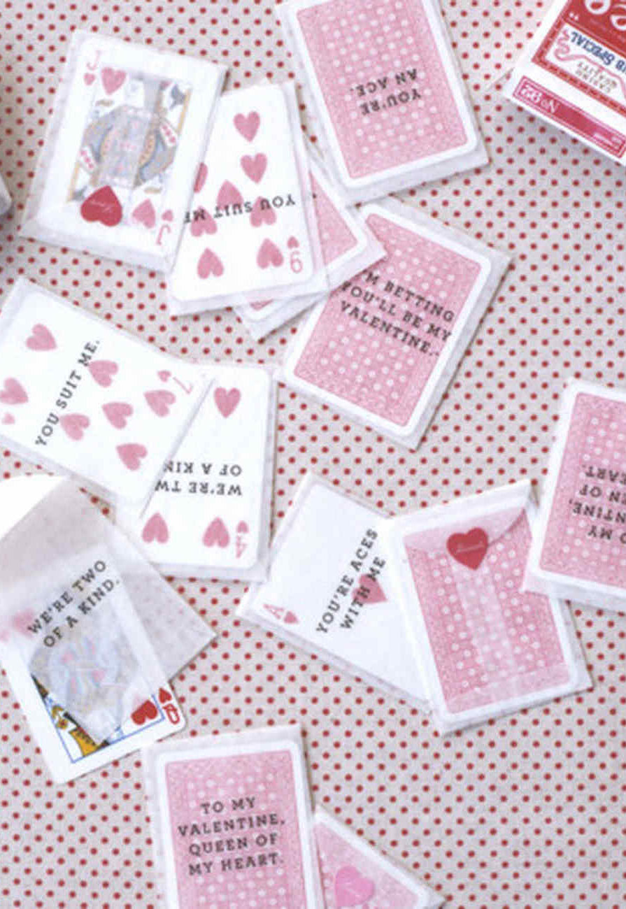 Você pode personalizar o baralho e criar pequenos envelopes com mensagens para mostrar que é possível ter sorte no jogo e no amor também.