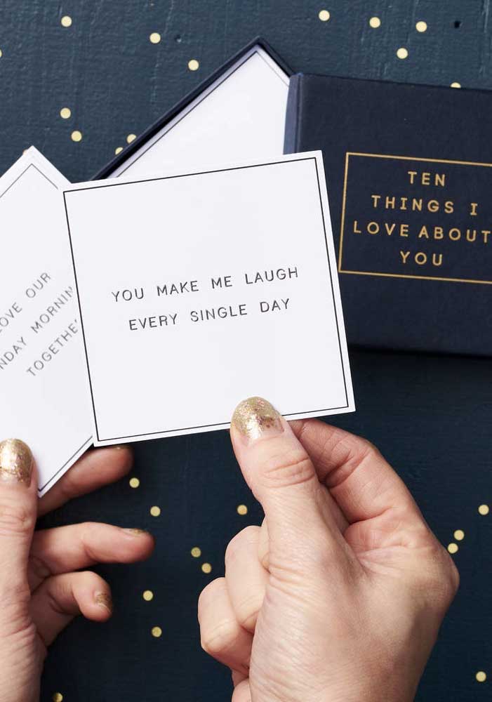 Uma ideia criativa para fazer em casa para o seu amor. A lista de materiais necessários é curta: uma caixinha, papel, tesoura, cola, caneta… ah, e suas melhores declarações!