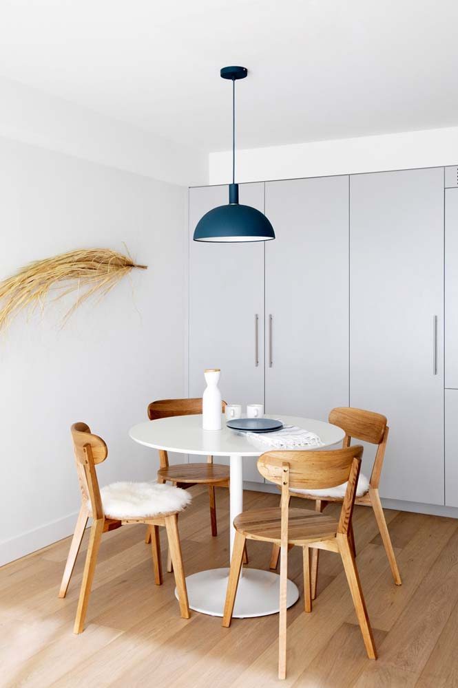 Imagem 18 – Sala de jantar com mesa redonda perfeita em estilo escandinavo.