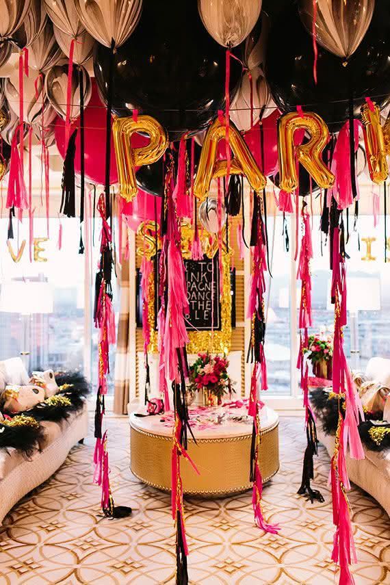 Imagem 1 – Inove e surpreenda com uma décor vibrante e descolada! Balões de hélio com fitas amarradas nas pontas criam um efeito sensacional!