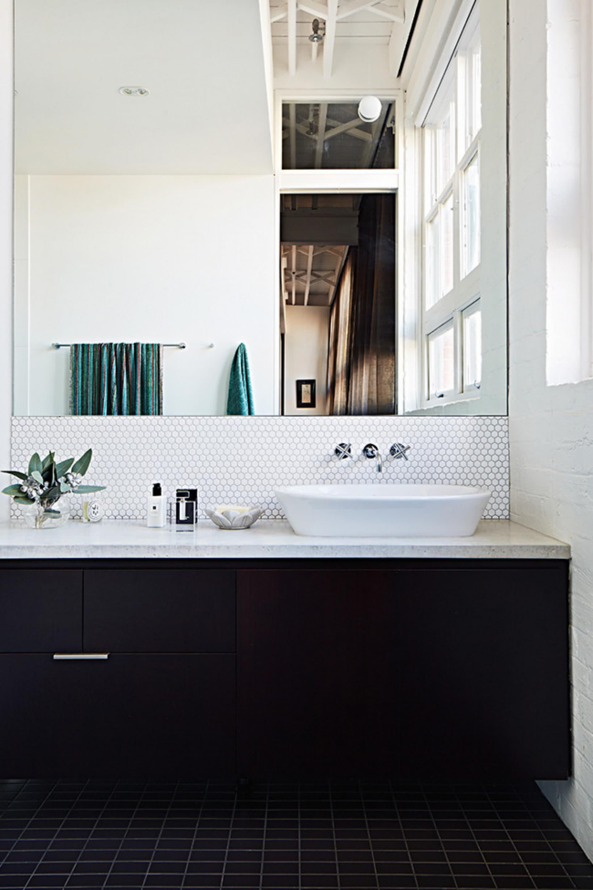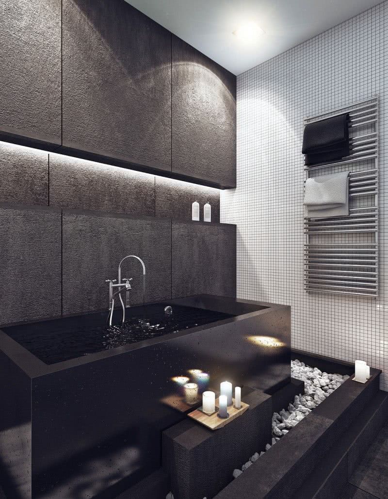 Para uma decoração preta que se destaca e fecha o ambiente, coloque um espelho próximo ao local para quebrar a seriedade.