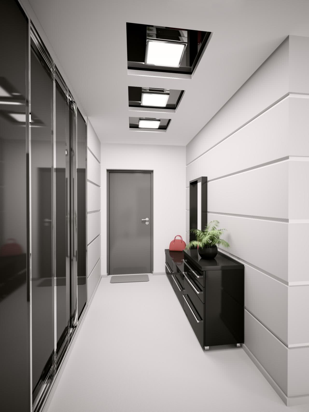 Imagem 36 – No corredor, pinte uma parede de preto e deixe o restante com a cor branca.