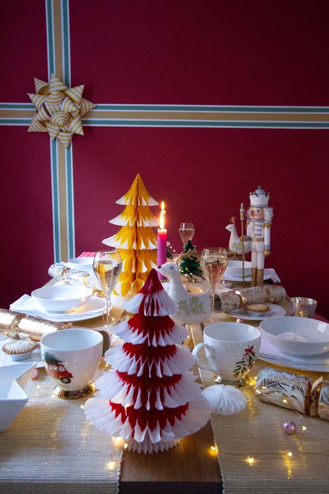 Imagem 3 – Aqui, o enfeite de natal para mesa é praticamente todo o pinheiro! Sob ele, uma faixa xadrez para compor as cores do natal.