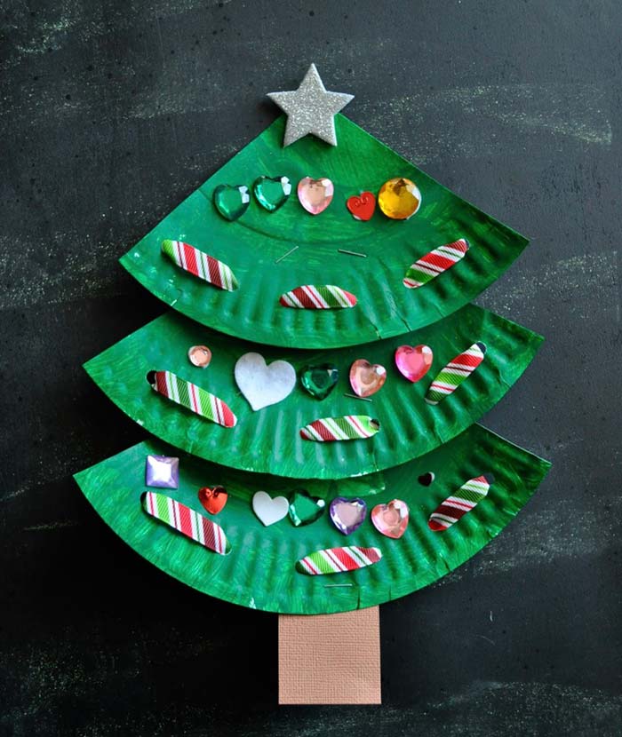 Imagem 23 – Pratos de papelão formam pequenas árvores de Natal.