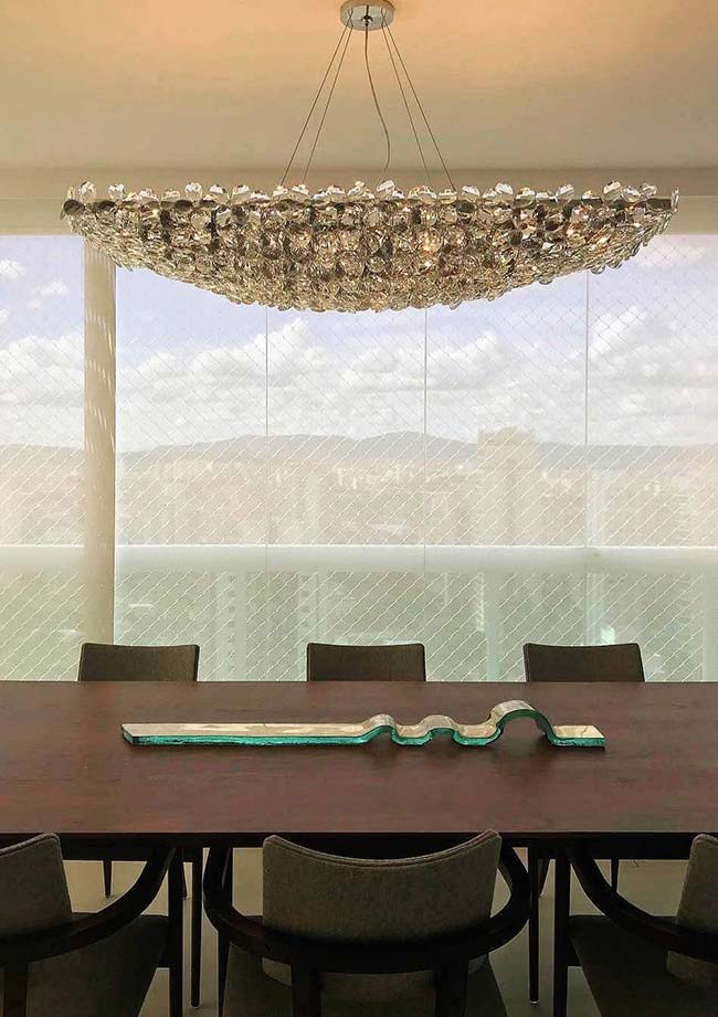 Imagem 8 – Enfeite para mesa de jantar: vidro nas luminárias e no centro de mesa.