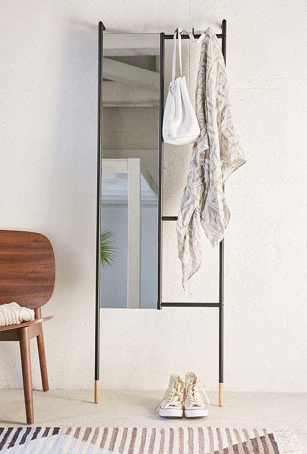 Imagem 47 – Cabideiro com espelho super contemporâneo e inovador: uma faixa vertical estreita de espelho também pode te ajudar na sensação de amplitude do espaço.