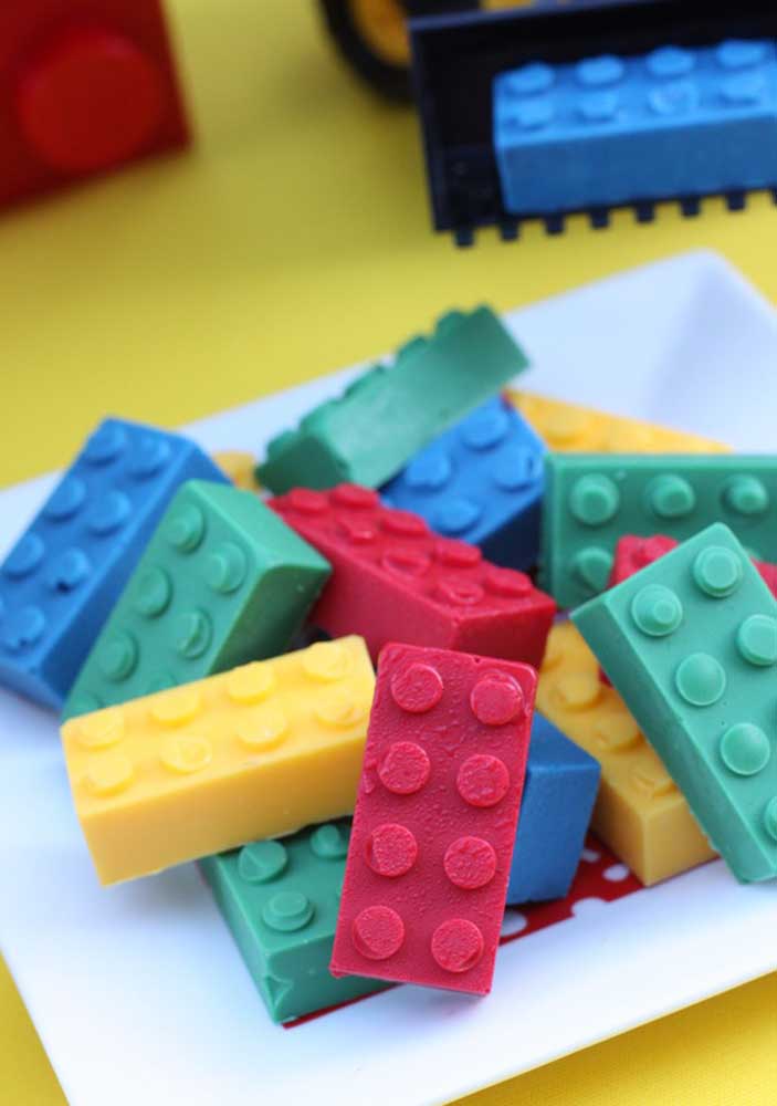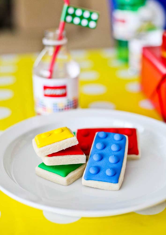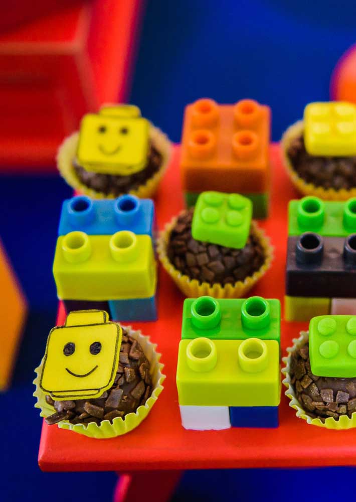 Transforme lanchinhos em peças de Lego, faça brownies com confetes de chocolate simulando os encaixes do brinquedo e sirva bebidas coloridas para aumentar o clima descontraído da festa.