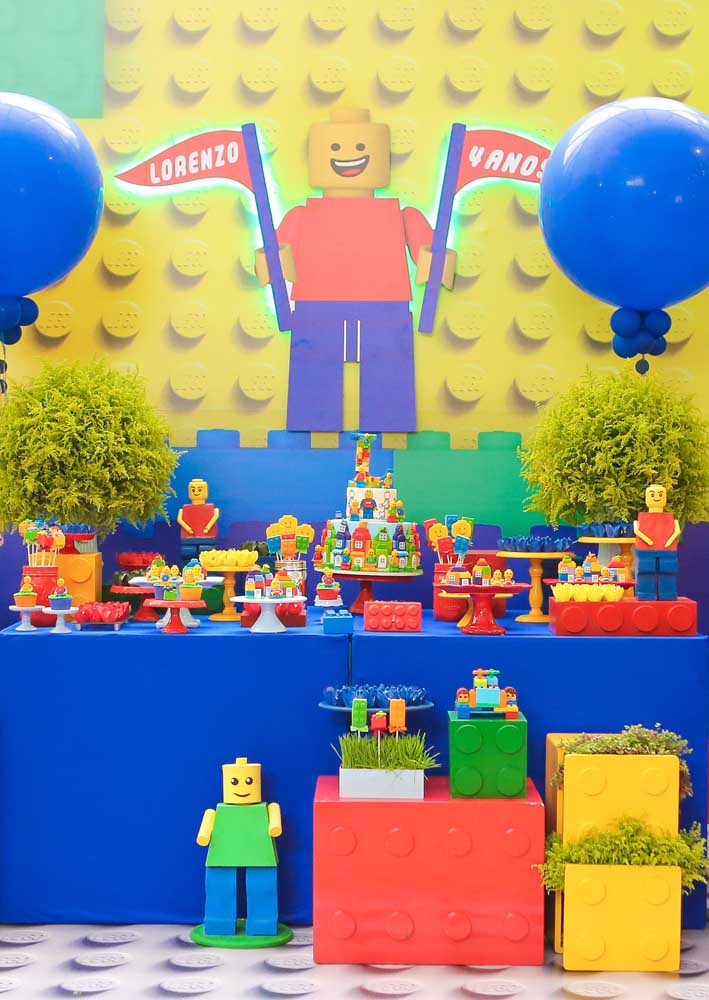 Em uma festa Lego não pode faltar Lego, é claro! Use e abuse das pecinhas de montar por toda a decoração.