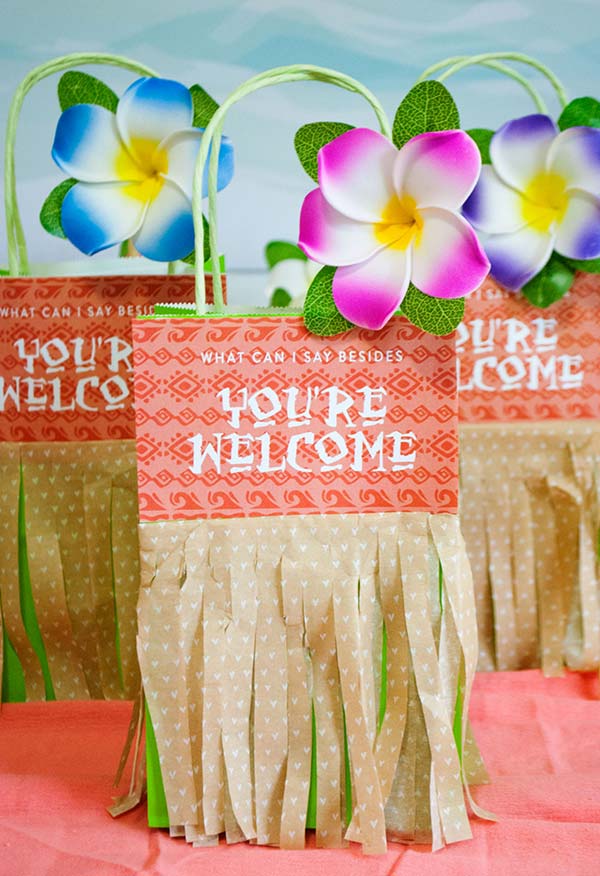 Não se esqueça de oferecer adereços para seus convidados realmente se sentirem numa ilha da Polinésia. Colares com folhas ou flores, hibiscus para colocar no cabelo, tattoos fake para imitar o Maui, óculos de sol e outros acessórios que lembrem o clima certo para as aventuras no mar.