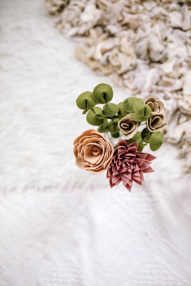 Imagem 48 – Imagina casar com um buquê de flores de feltro? Super diferente e criativo!