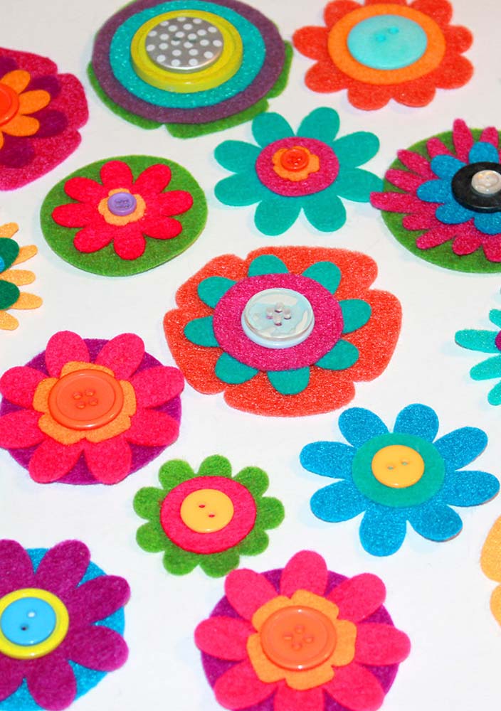 Experimente, por exemplo, fixar uma florzinha de feltro em uma camiseta, uma bolsa, um chapéu ou até mesmo em chalés e cachecóis.
