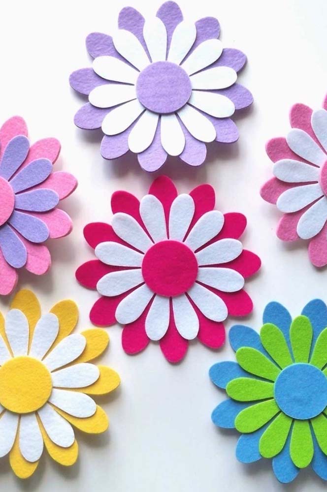 Basta você adaptar a flor ao estilo de comemoração. Por exemplo, uma flor de feltro bem colorida pode ser a melhor opção para um aniversário infantil, já uma flor de feltro de cor clara e delicada compõe uma linda lembrancinha para o chá de bebê.