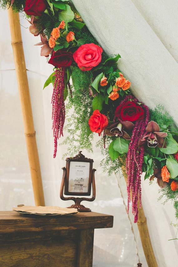 Imagem 5 – Flores para casamento: crisântemos vermelhos decorando as mesas dos convidados.