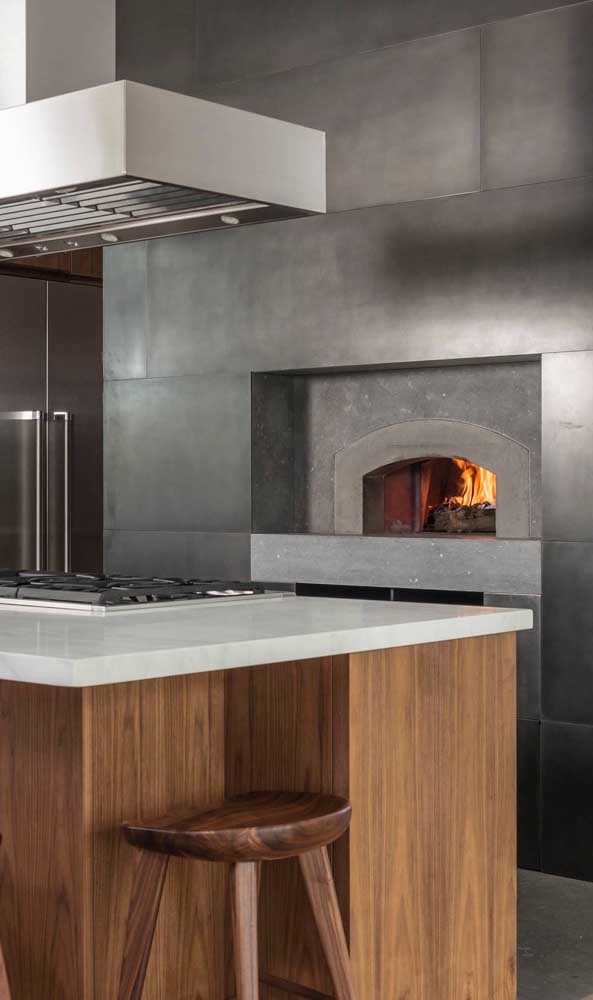 Imagem 34 – Forno a lenha super moderno para essa cozinha que esbanja estilo e personalidade.