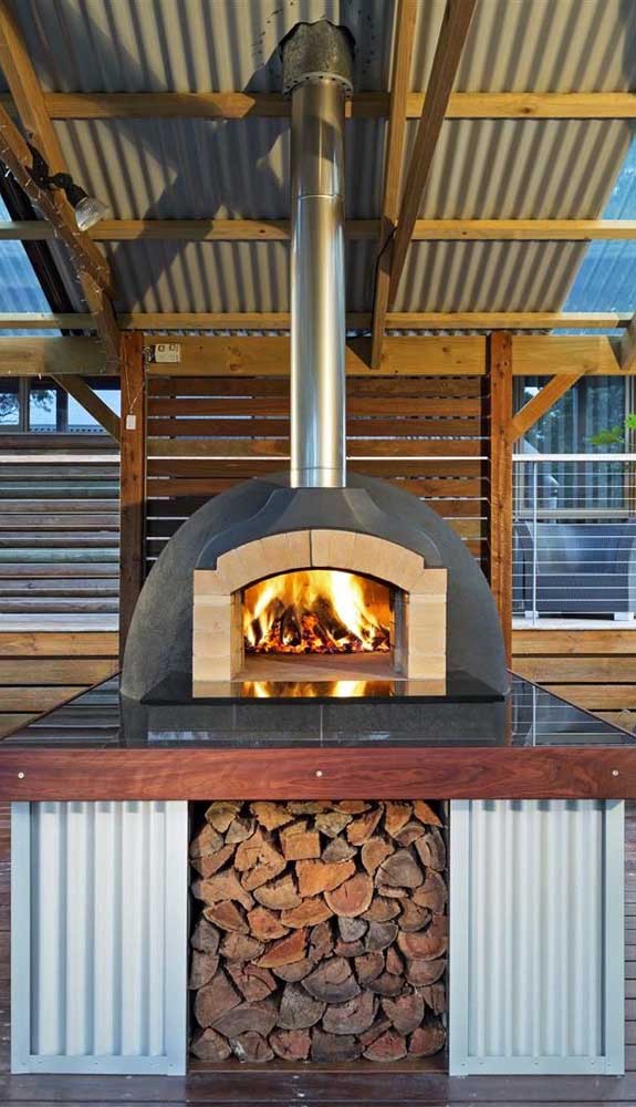 Imagem 20 – Modelo de forno a lenha metálico super moderno para surpreender as visitas.