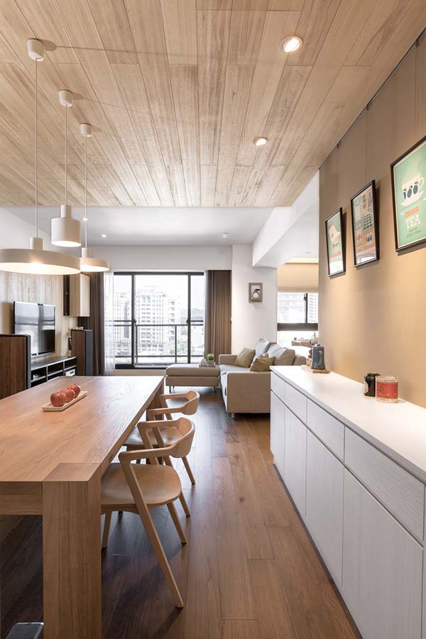 Imagem 21 – Forro de madeira clara em placas para um ambiente mais jovial.