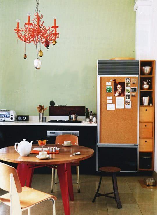 Imagem 22 – Um ambiente com a geladeira vermelha em destaque.