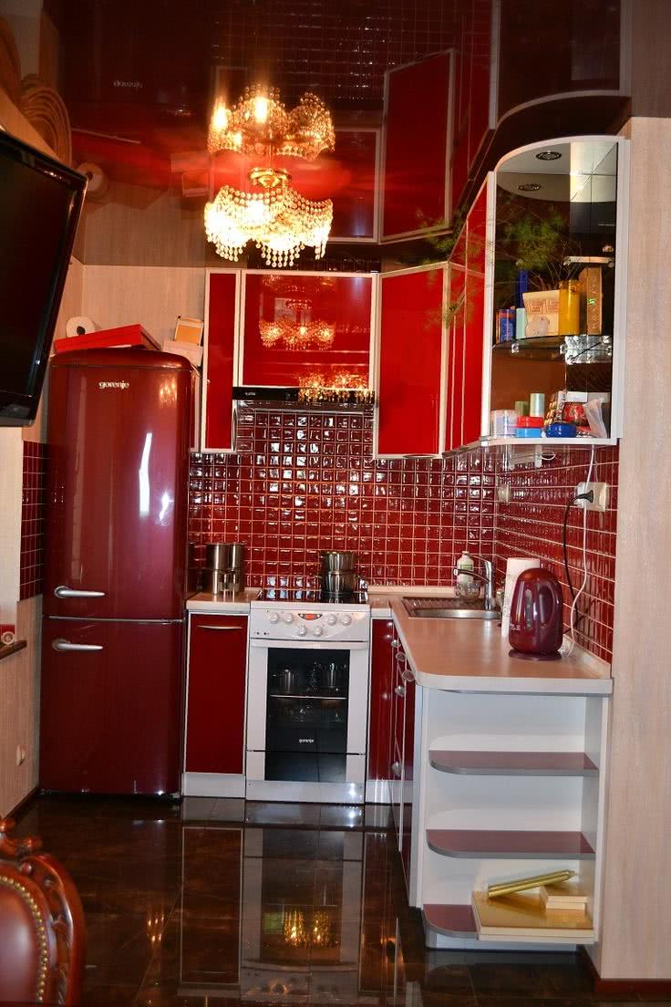 Imagem 38 – Geladeira retrô vermelha em cozinha pequena.
