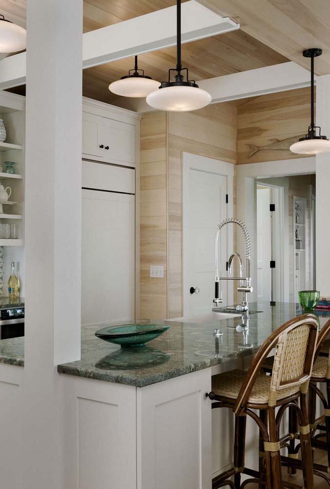 Imagem 17 – Para a casa rústica de madeira, uma bancada de granito verde pérola.