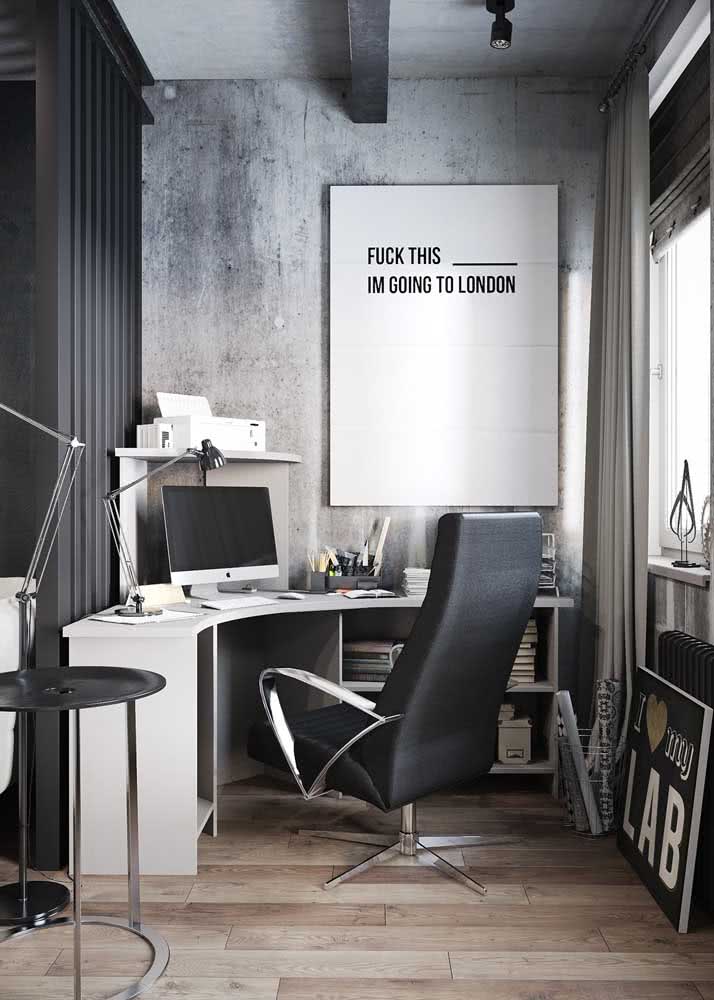 Imagem 60 – Home office com parede de concreto aparente.