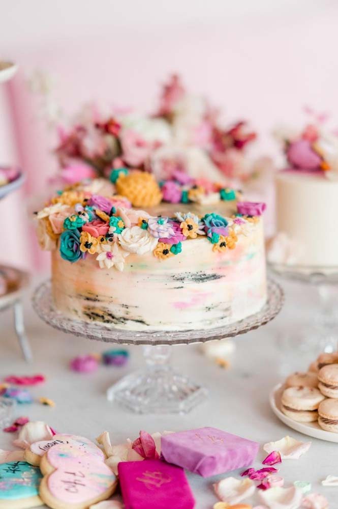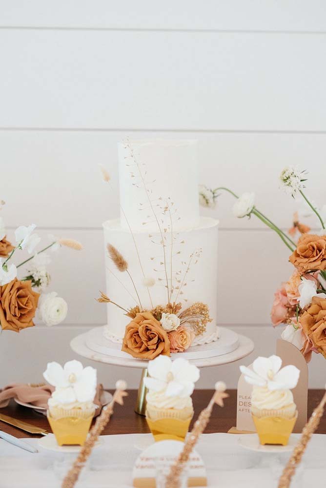 Imagem 20 – O bolo pode até ser simples, mas as flores mudam tudo ao redor!