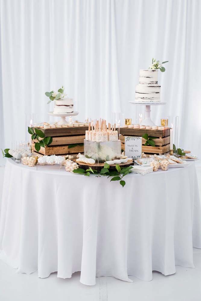 Imagem 55 – Com poucos elementos é possível criar uma mesa de bolo de noivado linda!