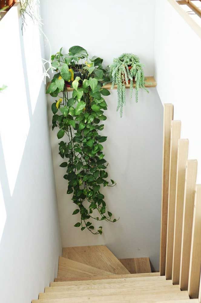Imagem 10 – A escada iluminada é o refúgio perfeito para essa jiboia pendente.