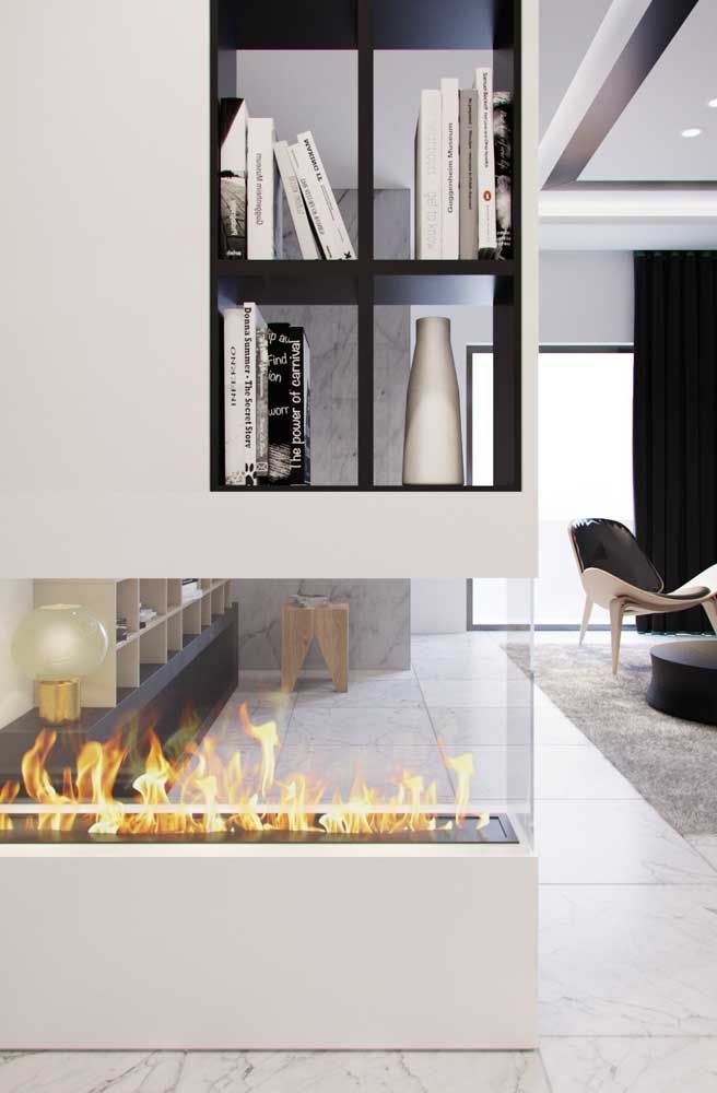 Imagem 18 – Combinação cheia de classe: lareira ecológica e mármore.