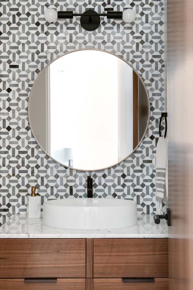 Imagem 50 – Use o espelho para refletir áreas interessantes do lavabo e acertar duas vezes no décor.