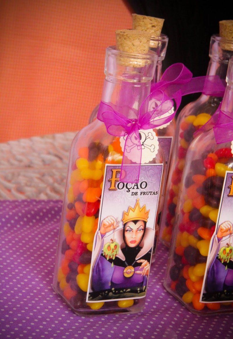 No contexto do filme, as garrafinhas vedadas com rolha e confeitos coloridos ficam ainda mais divertidas ao simular a poção da vilã!