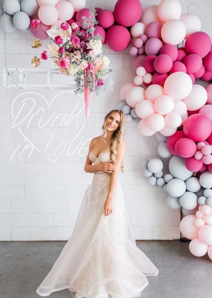 Imagem 27 – Letreiro neon rosa combinando com os balões da festa.