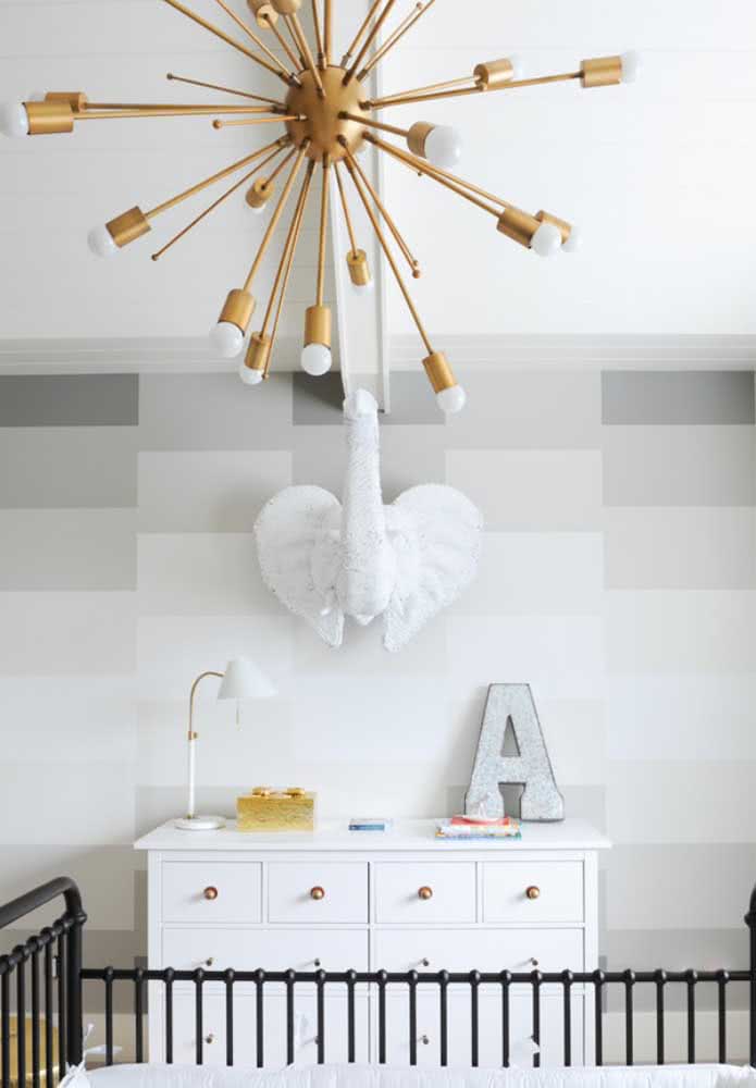 Imagem 10 – Lustre dourado para combinar com a decoração elegante do quarto de bebê.