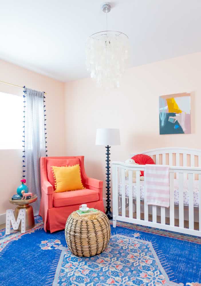 Já os lustres com cores mais vivas e detalhes coloridos são bem vindos em quartos de bebê de estilo moderno.