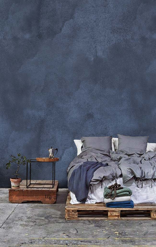 Imagem 19 – Para o quarto de casal de estilo rústico, a opção foi pelo efeito marmorizado azul escuro