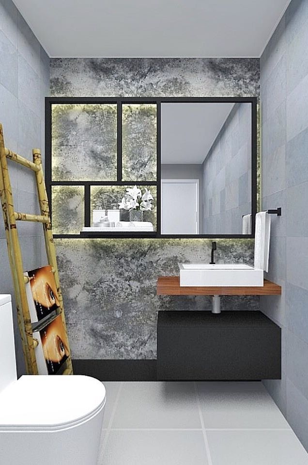 Imagem 49 – Banheiro com efeito marmorizado na cor do concreto.