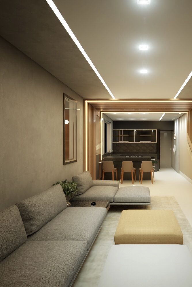 Imagem 16 – Cinza em todos os lugares dessa sala, inclusive na parede marmorizada