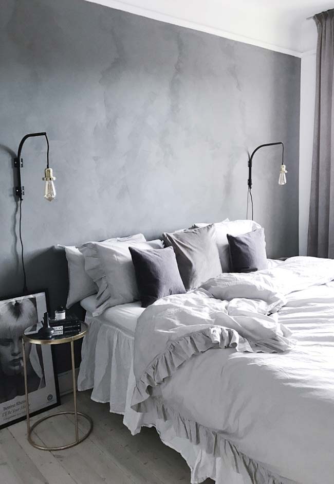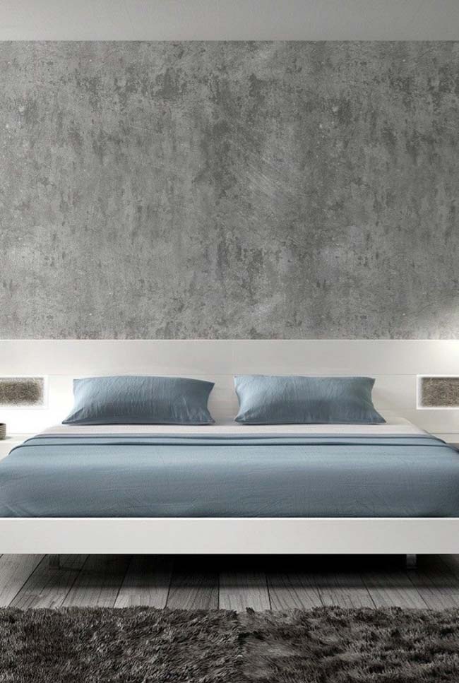 Imagem 52 – A parede marmorato cinza reforçou o estilo decorativo desse quarto.
