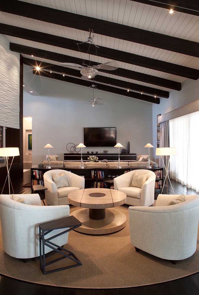Imagem 63 – Sala contemporânea com mesa de carretel; ela se encaixa em qualquer lugar.